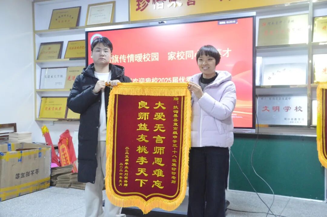 畅谈寄厚望,未来展宏图。锦旗赠送仪式落幕之后,校领导、科任老师与刘贺涛及家人围坐一堂,展开了一场温馨而恳切的交谈。丁俊峰书记详细询问了刘贺涛同学在大学的学习生活、专业探索与未来规划,并寄语他不忘初心、逐梦前行,始终怀揣感恩之心与奋斗之志,书写更精彩的人生篇章。交谈间,温情流淌,期许满怀,既延续了家校同心的深厚情谊,更勾勒出学子未来发展的美好蓝图。