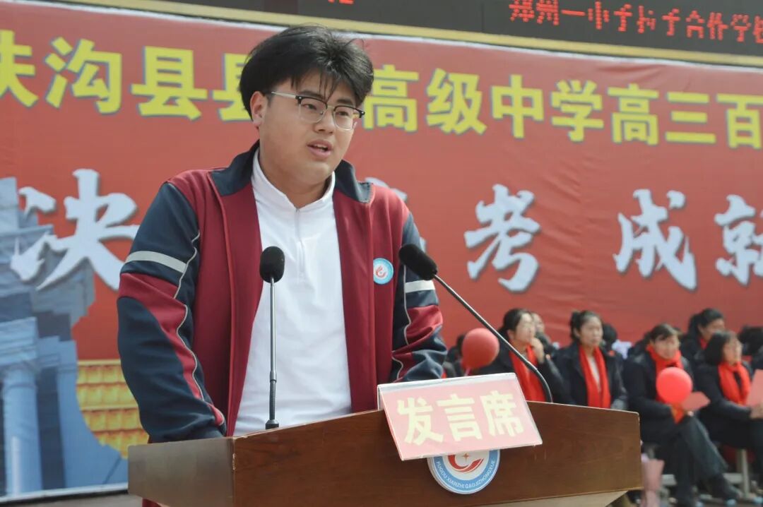 学子心声,勇担使命。学生代表马琪斐代表全体高三学子立下“百日冲刺、不负青春”的誓言,展现了县直高中学子的青春风采与必胜信念,点燃了全场学子的奋斗热情。